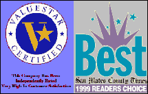 Readers' Choice in the San Mateo County Times 1998 and 1999 as Best Carpet Retailer.